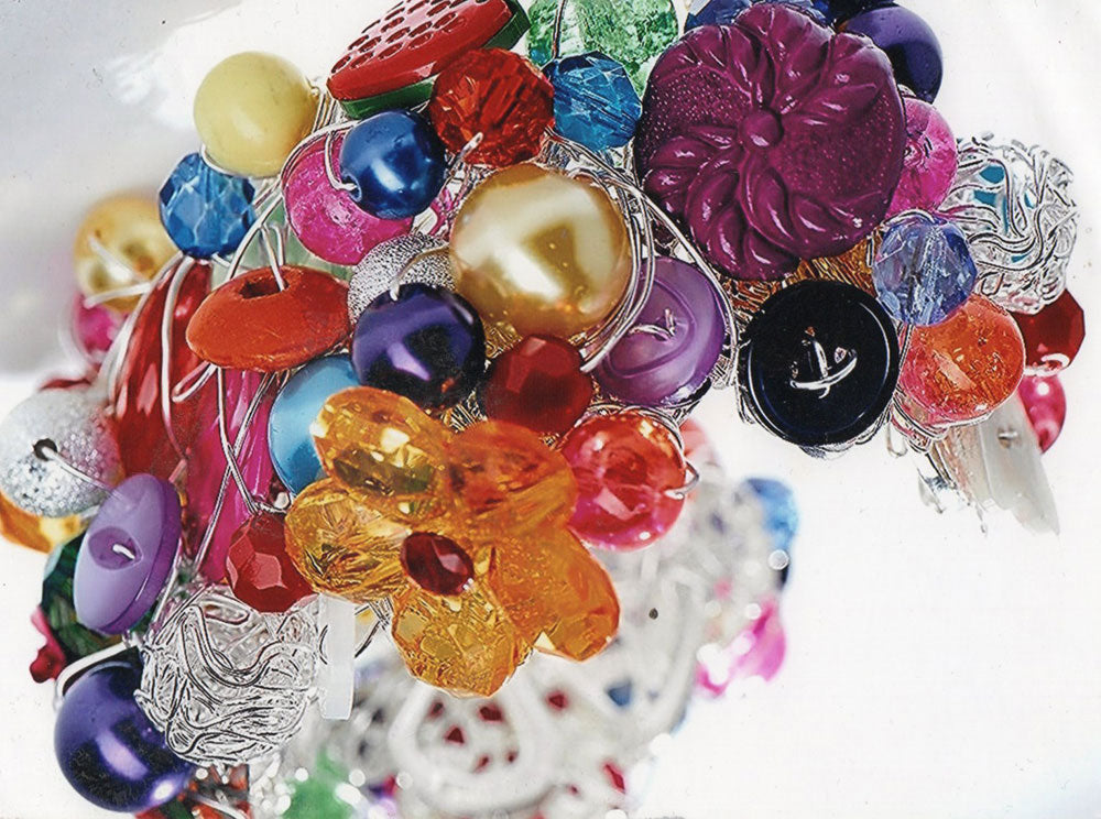 Melanie enters the West Coast Cooler Citra Showcase with a new experimental design, a cuff binding bright costume beads with complex wiring to achieve a unique standout look.