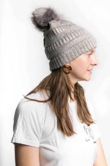 Contrast Knit PomPom Hat