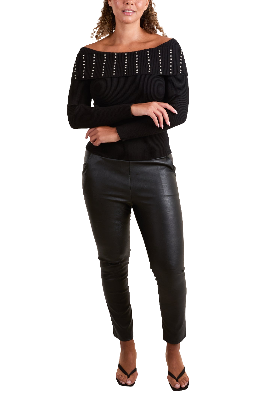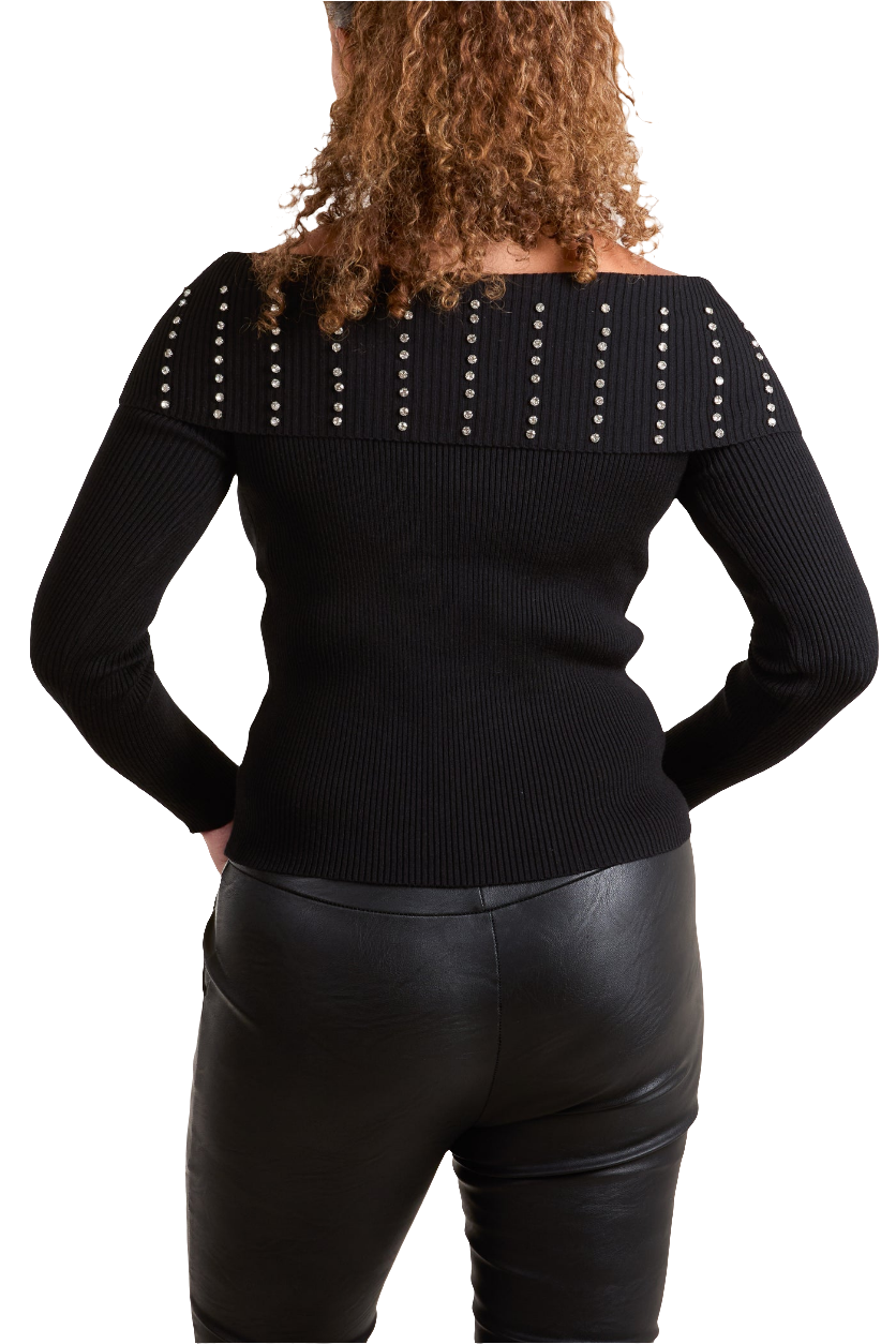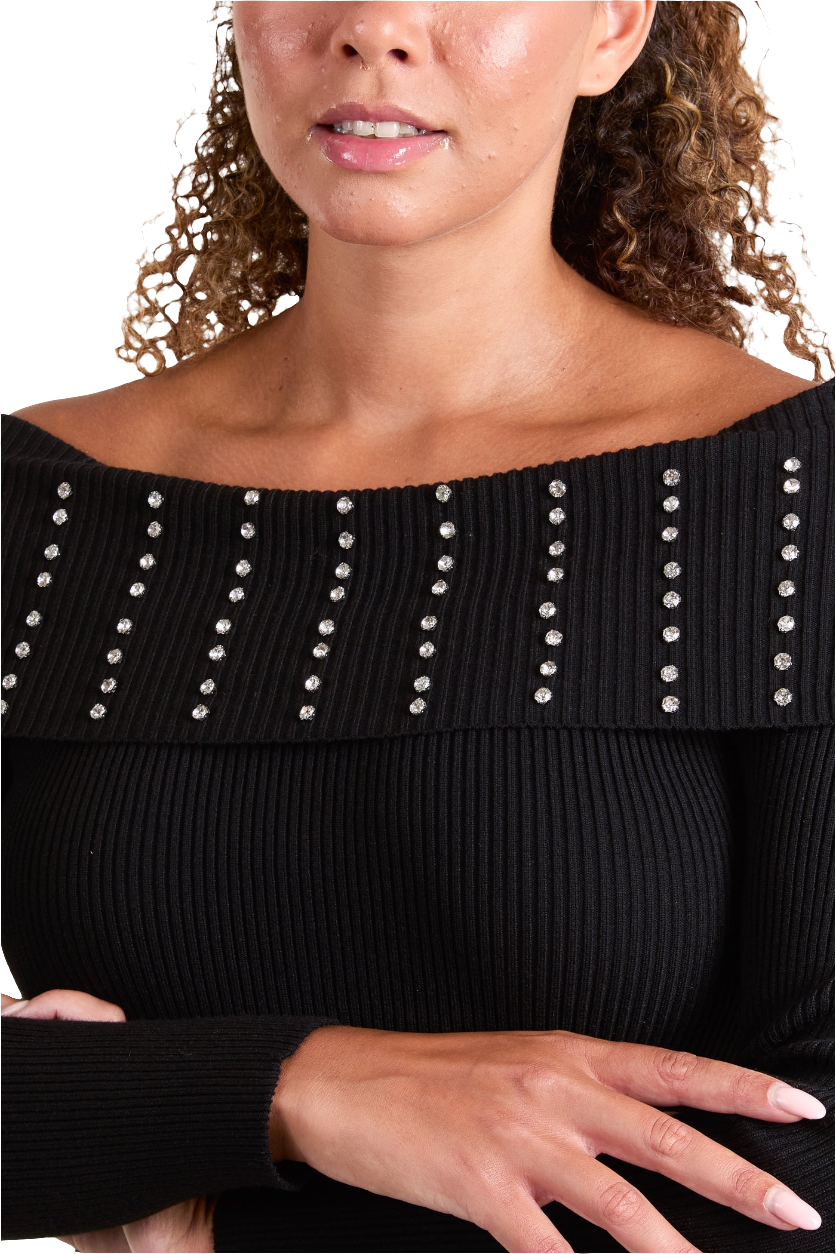 Diamanté Bardot Ribbed Jumper
