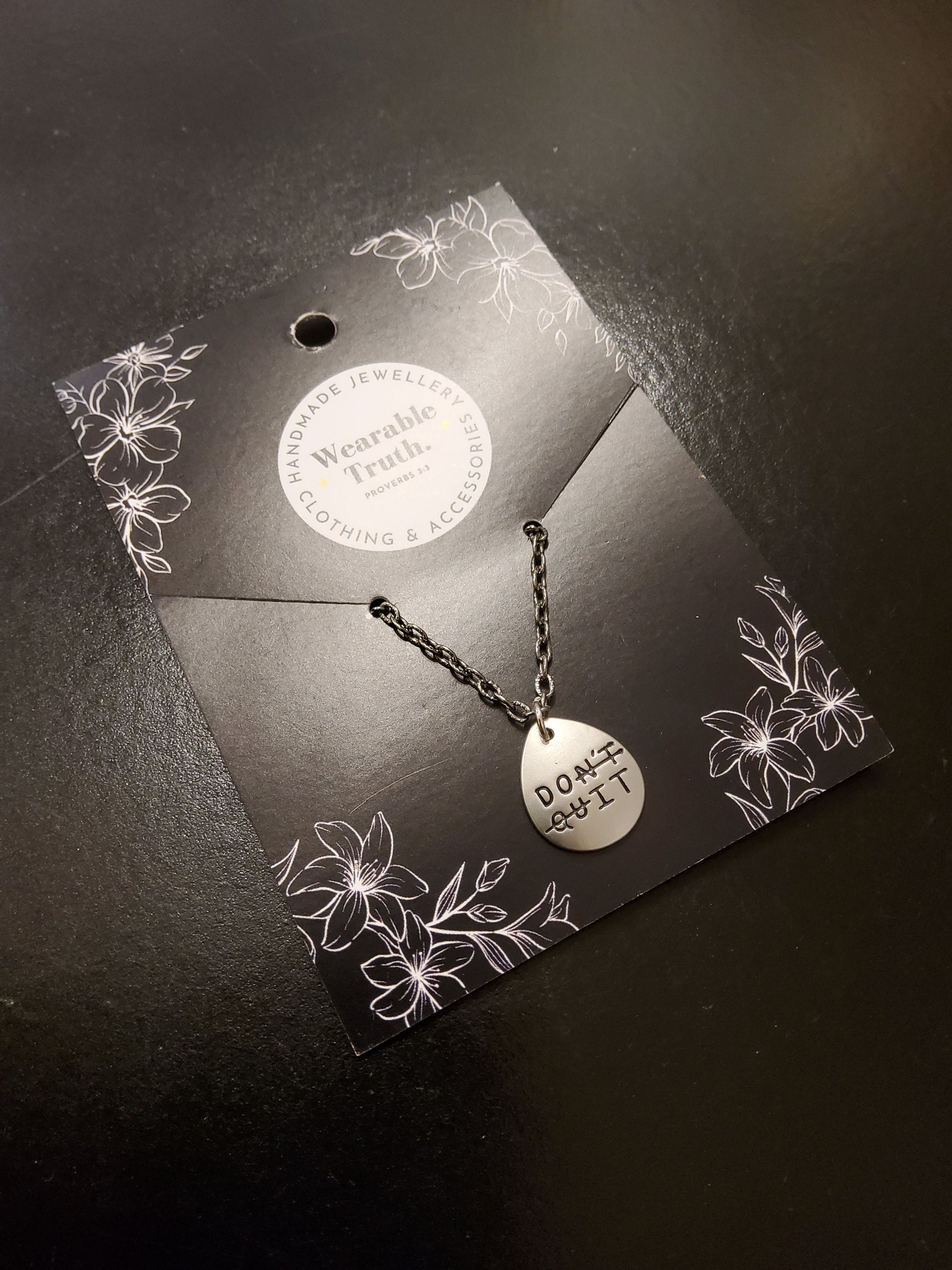 The Don't Quit Necklace is an impactful and inspiring accessory. A lovely encouraging gift!