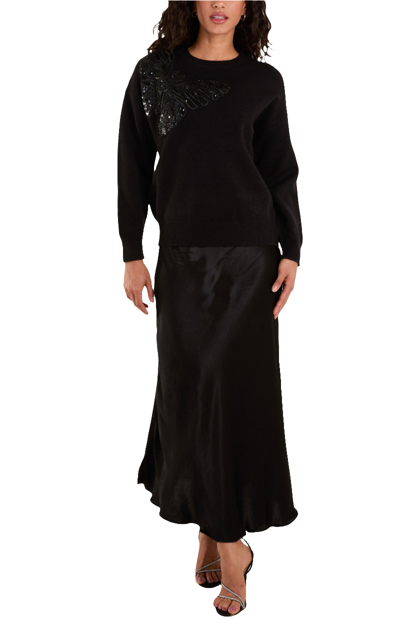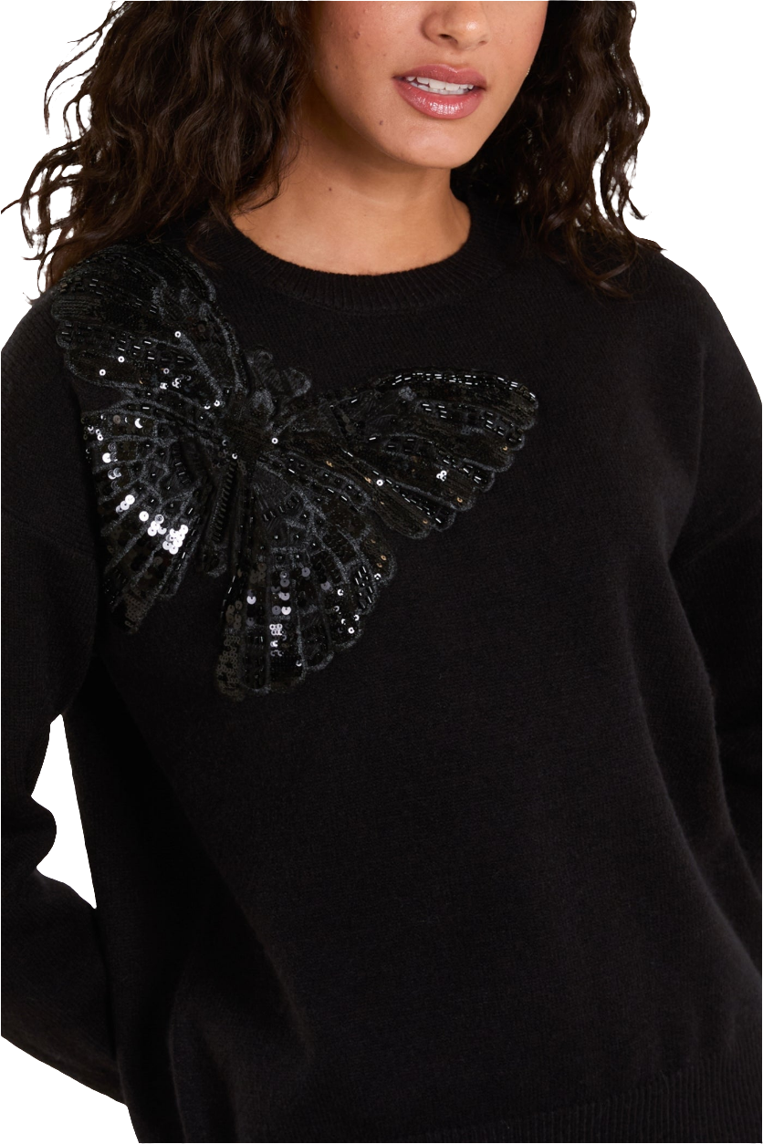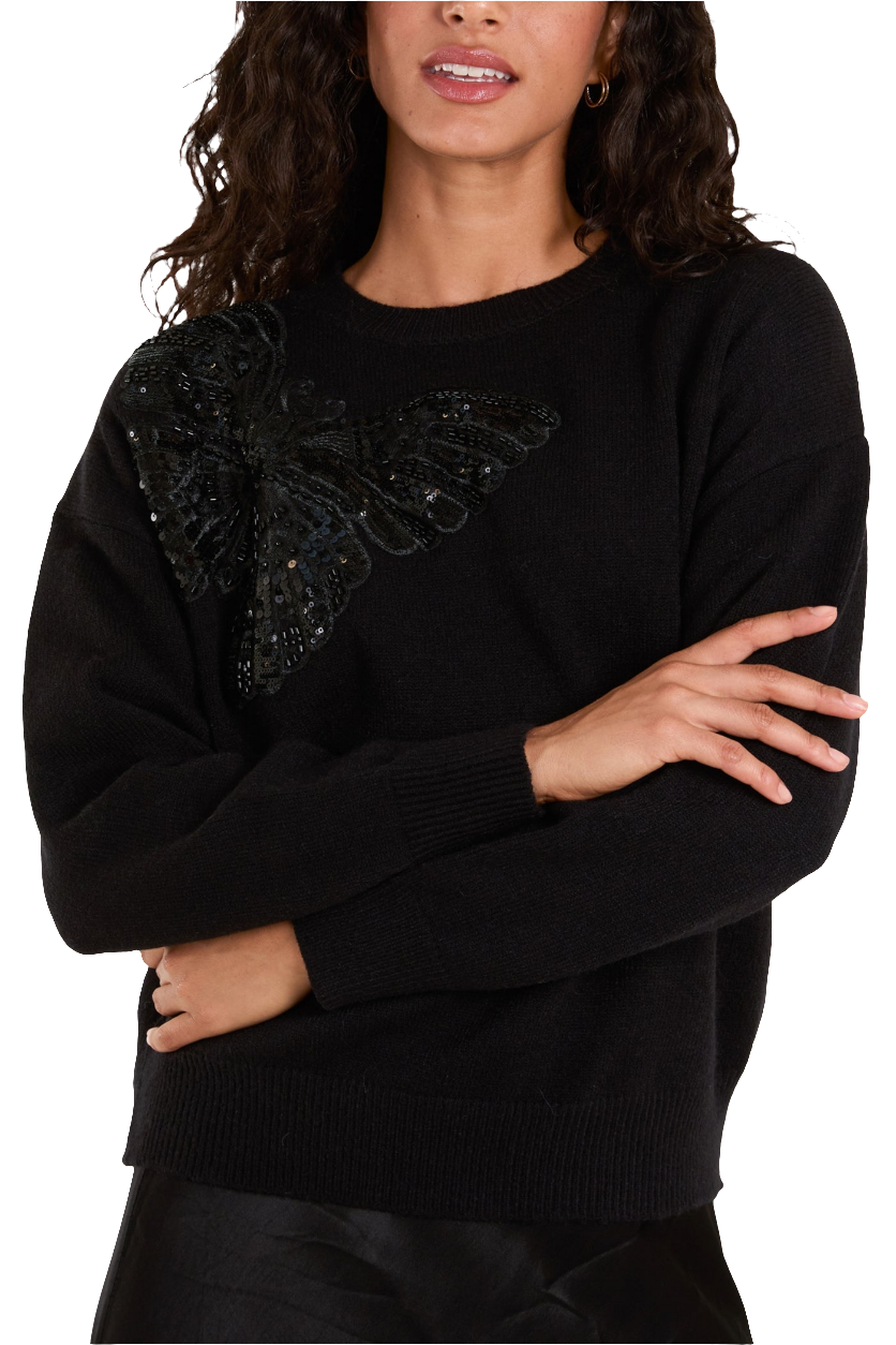 Elevate your wardrobe with our Embellished Sequin Butterfly Jumper. Made with soft material and featuring a subtle sparkling butterfly design, this must-have jumper adds a touch of glamour to any outfit. Perfect for any occasion, this jumper is a must-have for any fashion forward individual.