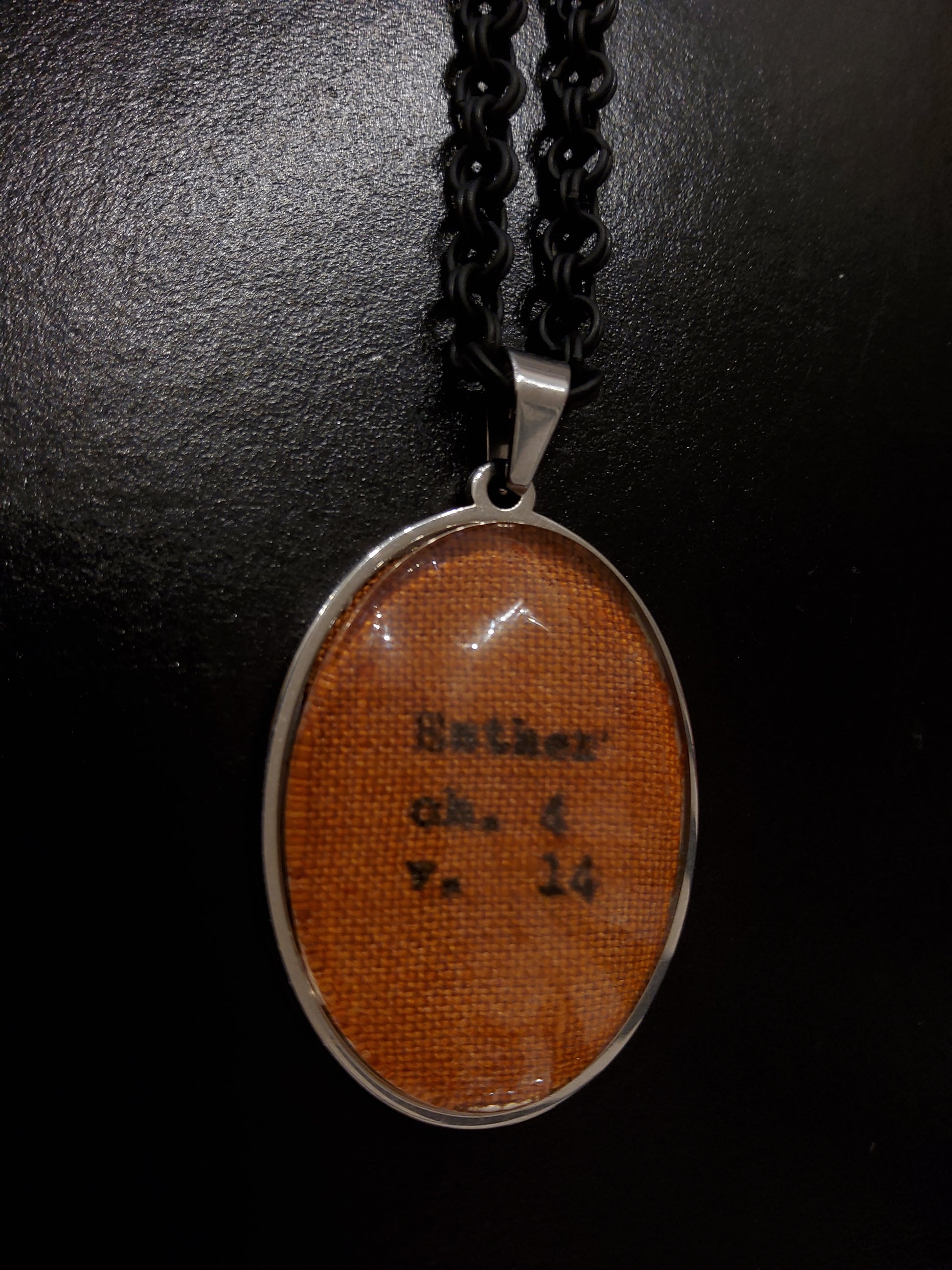 The Esther 4:14 Orange Linen Necklace is a beautiful reminder piece featuring a linen typewritten pendant on a sleek black chain. This unique necklace is perfect for adding a touch of elegance to any outfit while also serving as a constant reminder of faith and strength. Made with high-quality materials, it is a must-have for a stylish and faith-based piece.