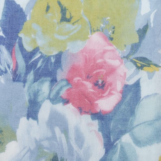 This delicate floral scarf is both soft and lightweight, making it the perfect addition to any outfit. The beautiful blue hue combined with the flowers adds a pop of colour to any ensemble, making it a versatile accessory. Stay comfortable and stylish with this must-have scarf.