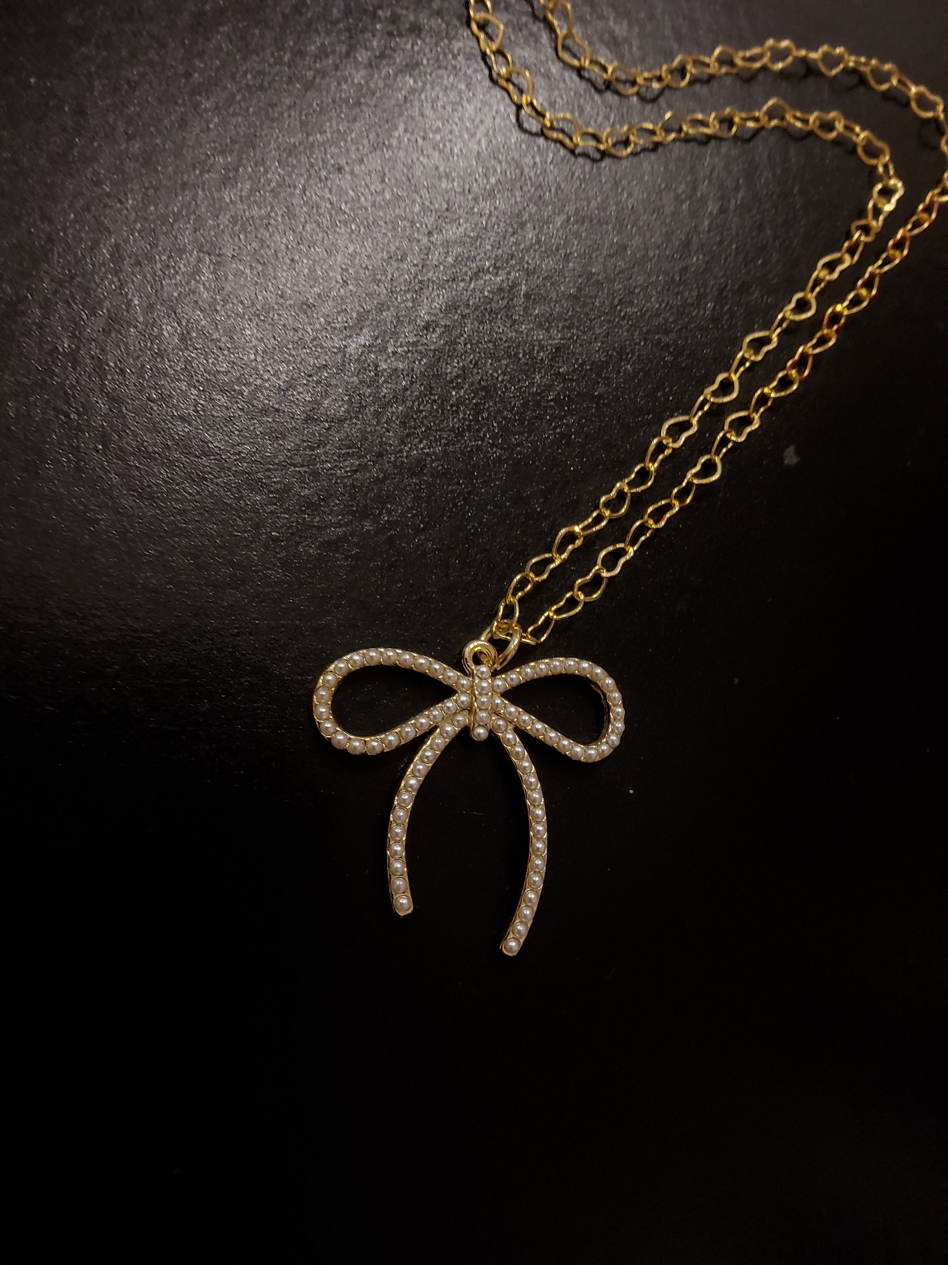 This elegant Gold Diamanté Bow Necklace with Heart Chain is a cute and versatile accessory that will elevate any outfit. Featuring intricate detailing and a sparkling diamanté bow, this necklace is perfect for adding a touch of glam to your wardrobe. A must-have for any fashion-forward individual.