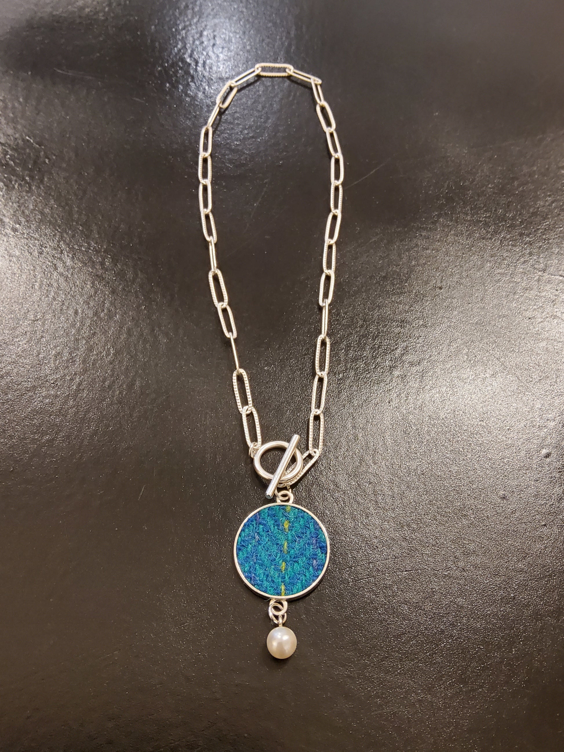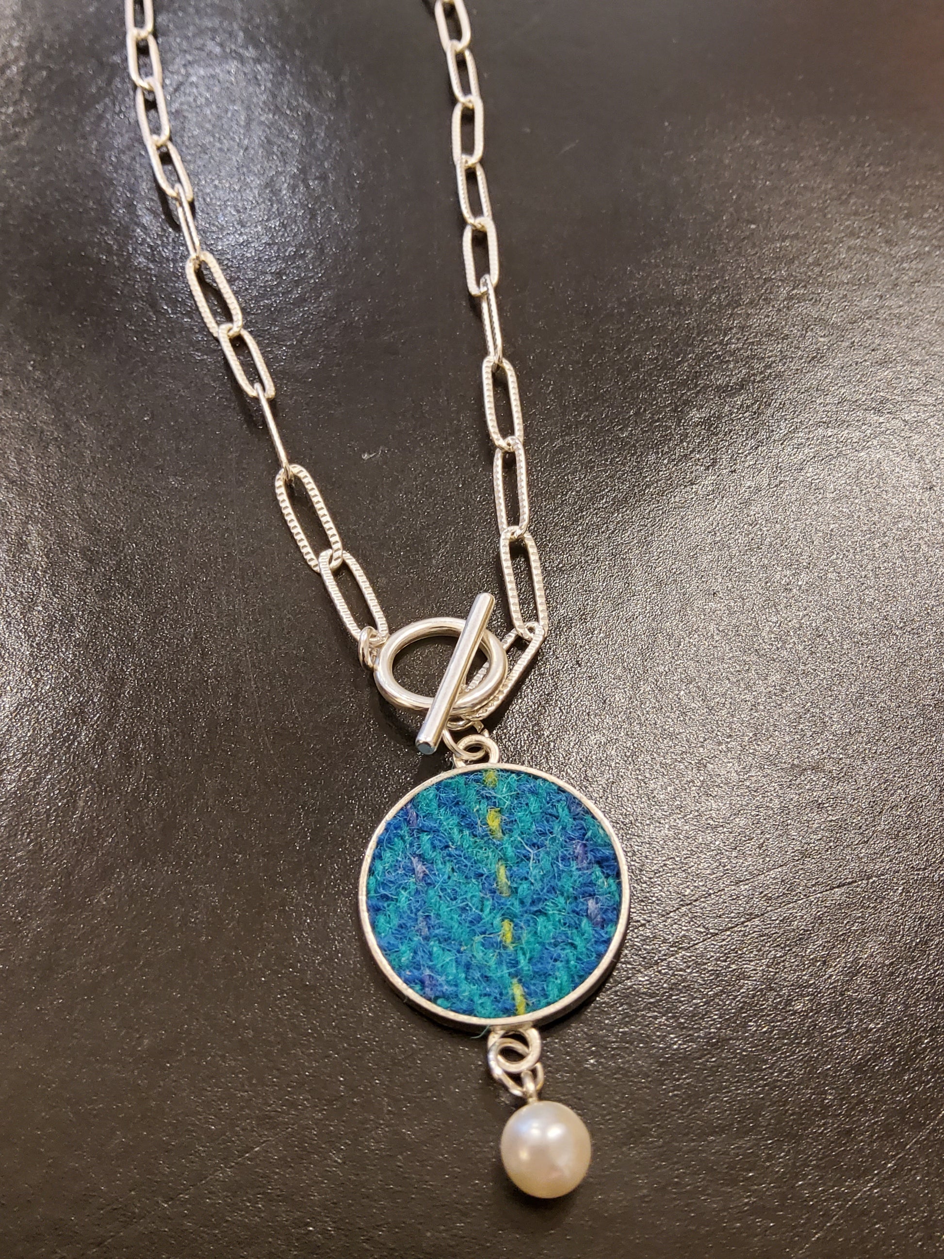 Harris Tweed necklace in teal blend