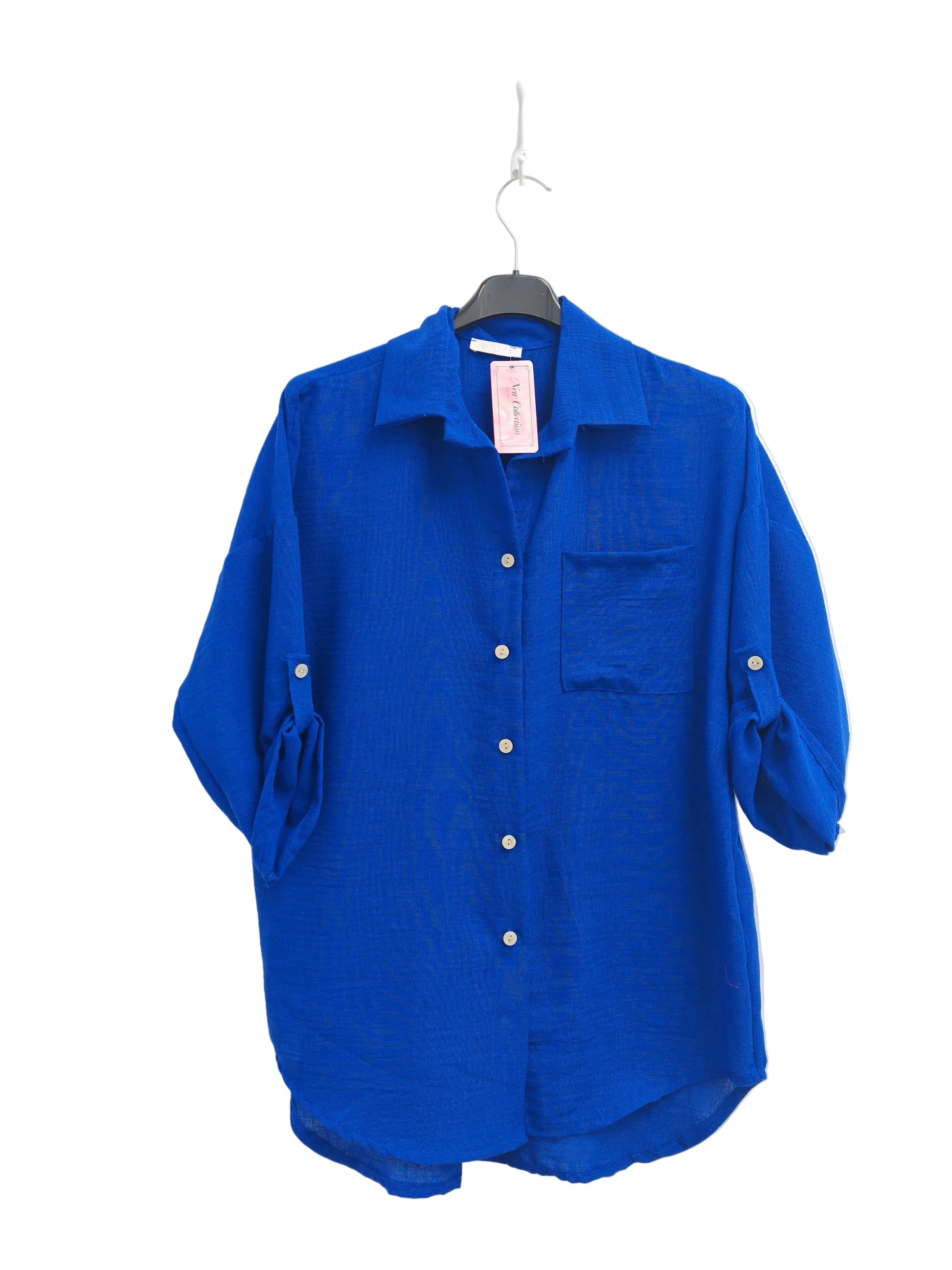 The Italian One Size Full Button Linen Shirt Blouse combines elegance and functionality. Crafted from high-quality linen, this blouse offers breathability and comfort, making it suitable for various occasions. Its versatile design features a stylish pocket and a tailored fit, ensuring a polished appearance while allowing ease of movement.Italian One Size Full Button Linen Shirt Blouse with Pocket One Size fit 8-14 /16 Light Weight Slightly stretchy 70% Polyester 20% Cotton 10% Linen