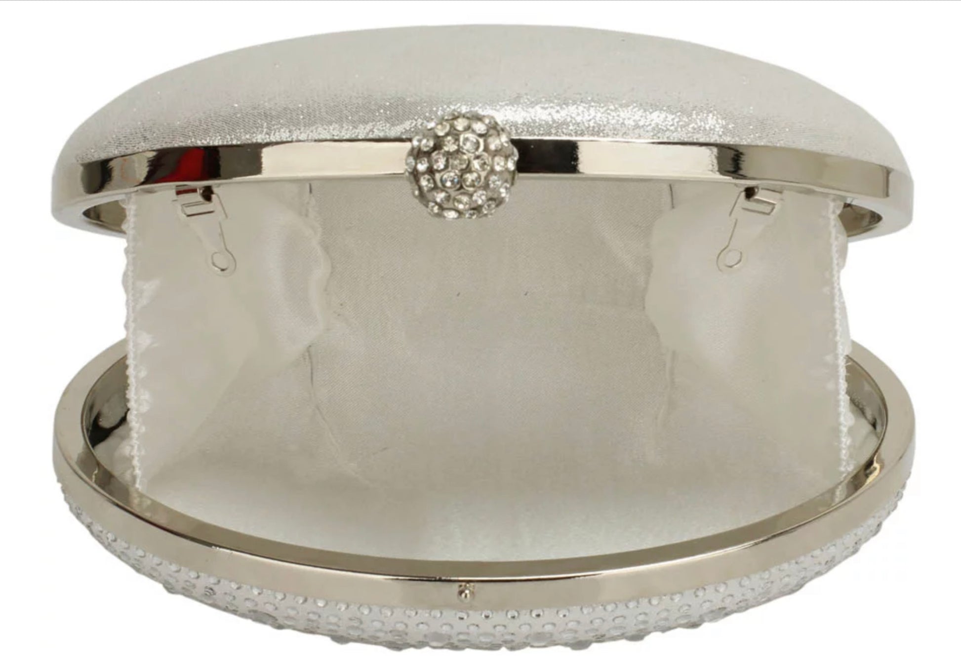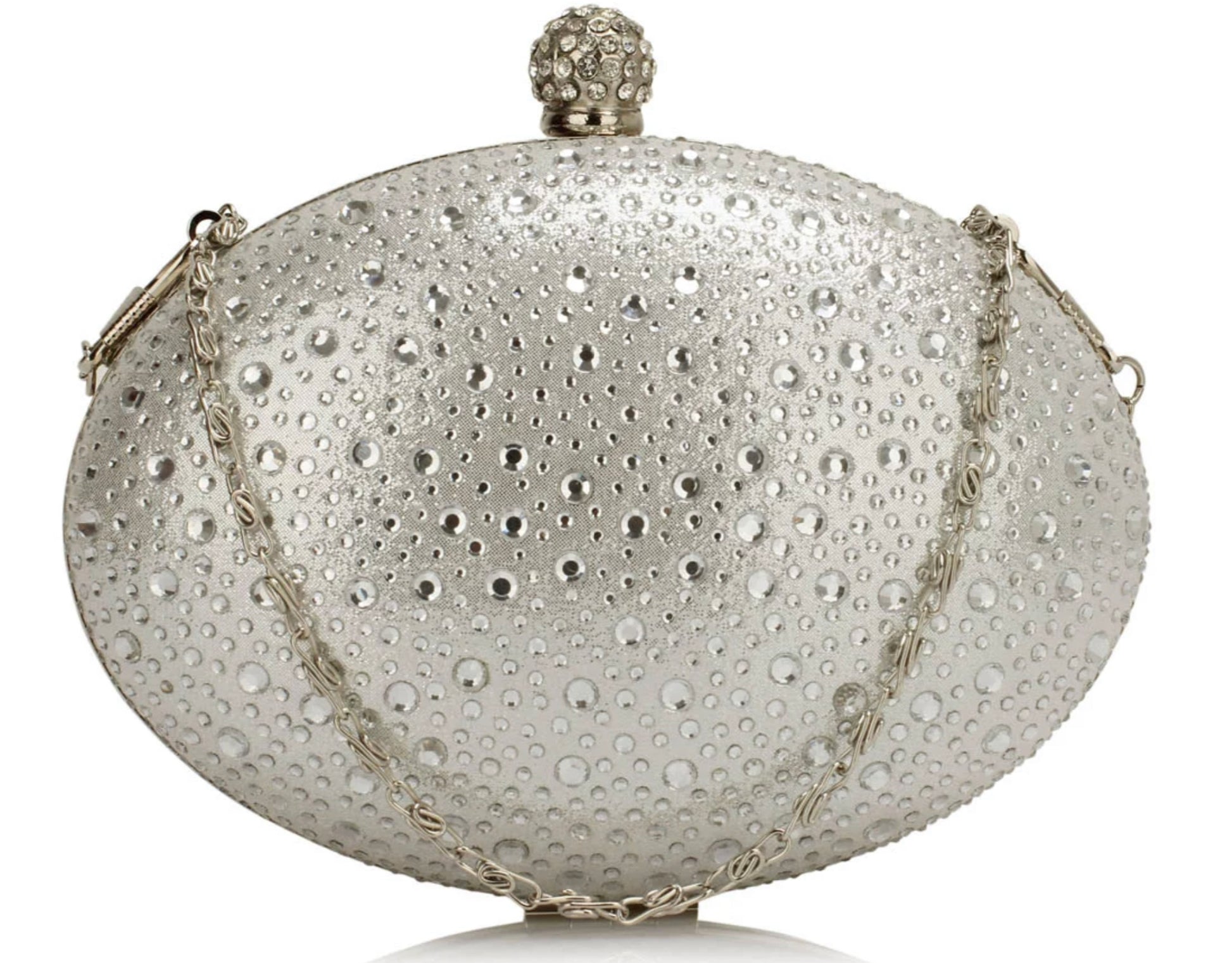 Elevate your evening look with this Diamante Design Evening Clutch Bag. A structured piece embellished with diamantes - it really will steal the show! Its neutral colourway means it will coordinate with many outfits. Great for formals, weddings or a night out. A beautiful piece!