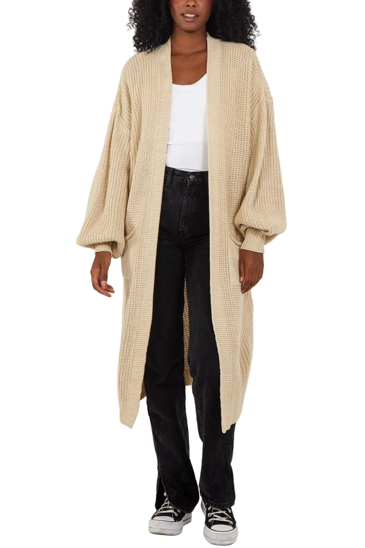 Knitted Long Coatigan Cardigan in beige