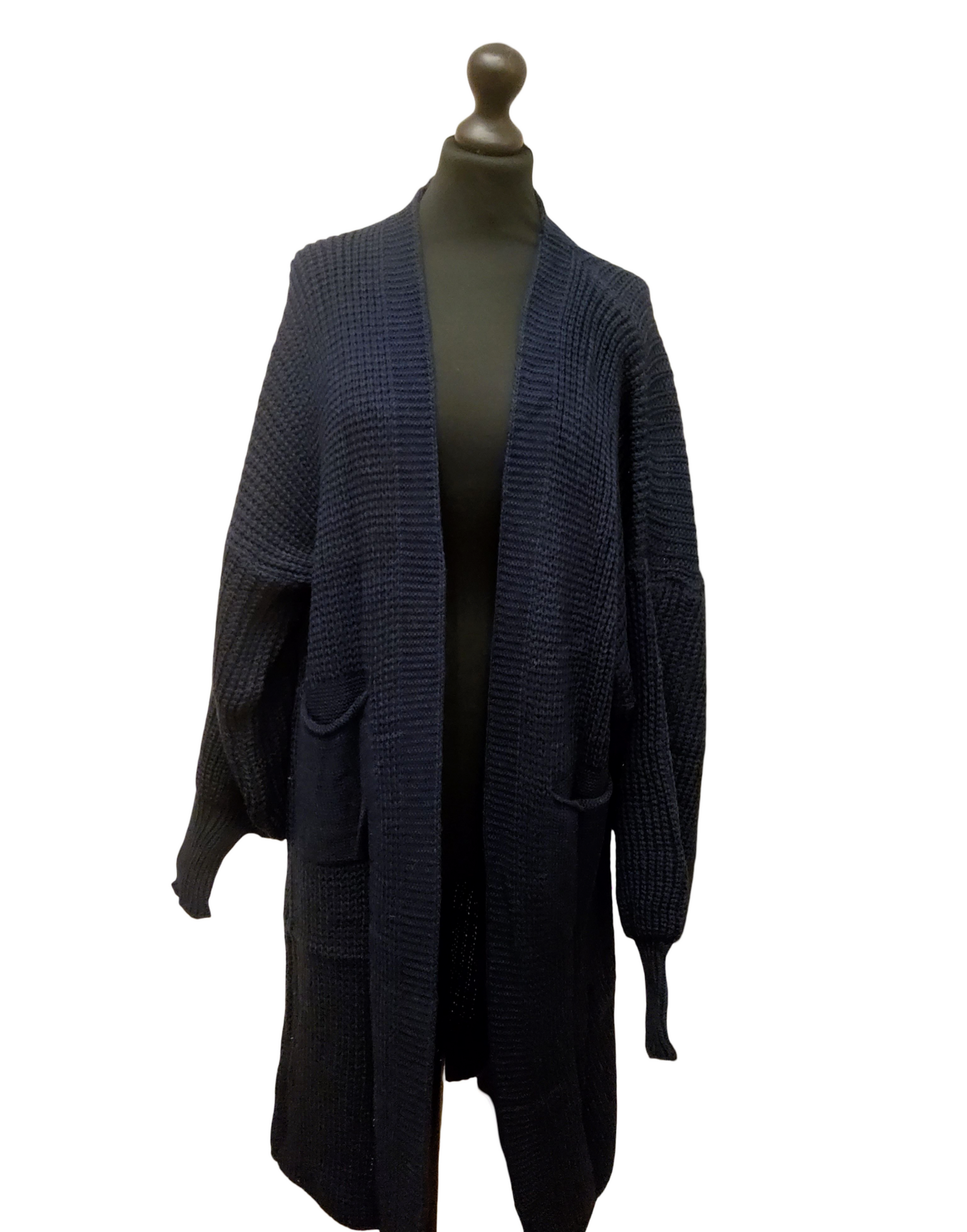 Knitted Long Coatigan Cardigan in navy