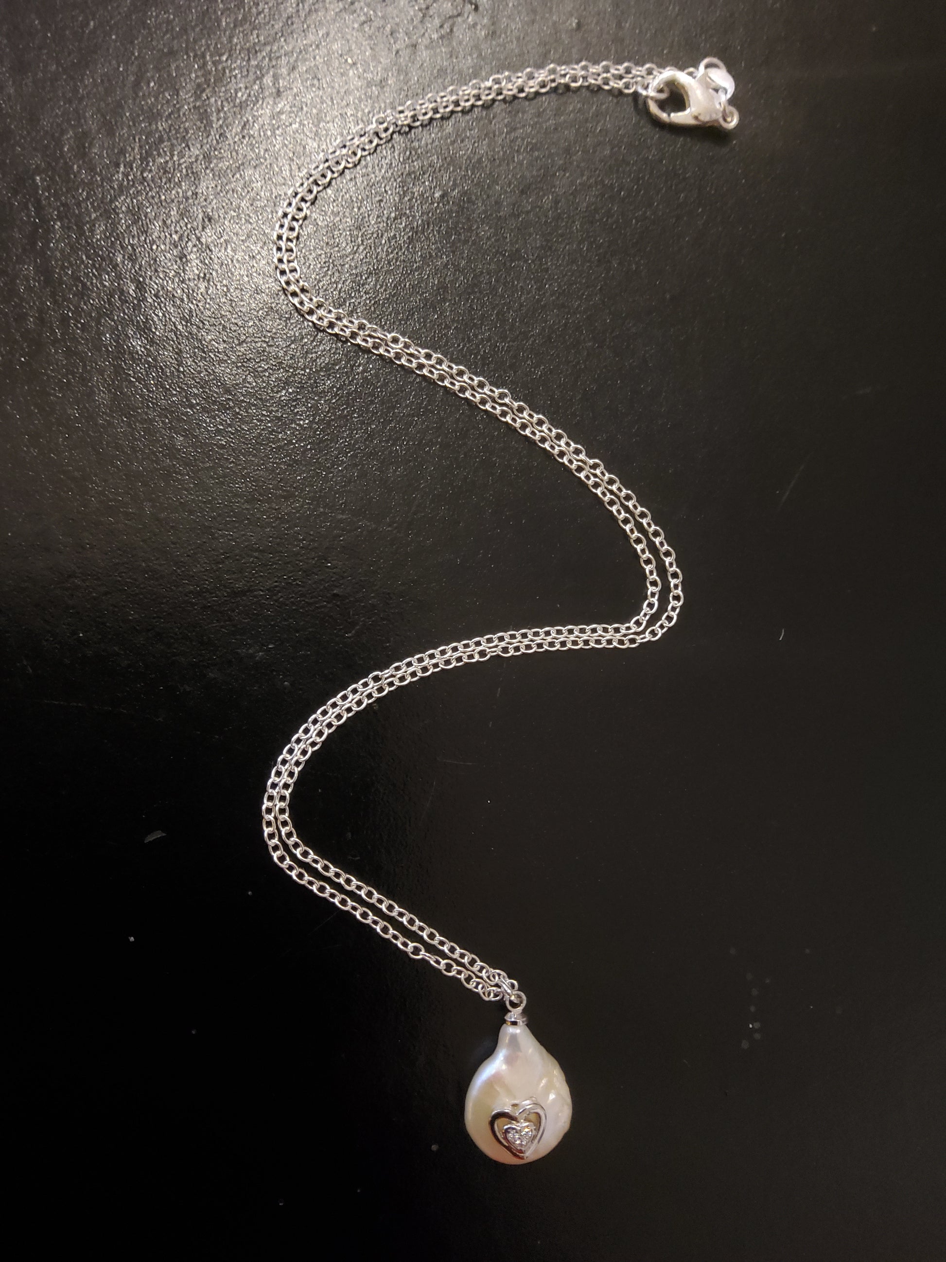 Freshwater Baroque Pearl Necklace with silver heart appliqué