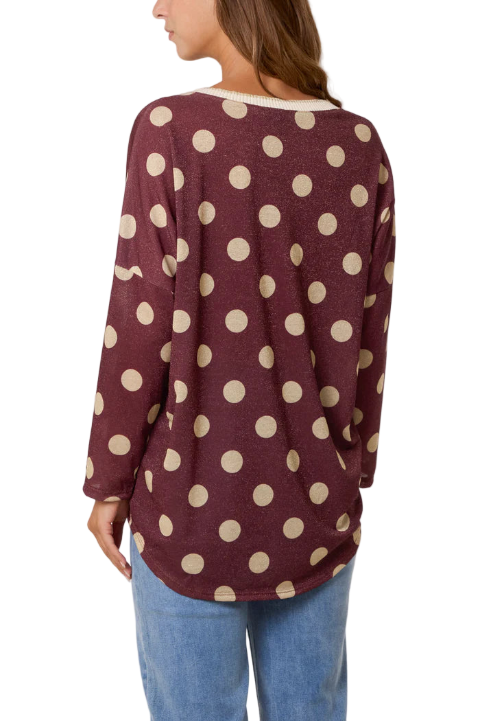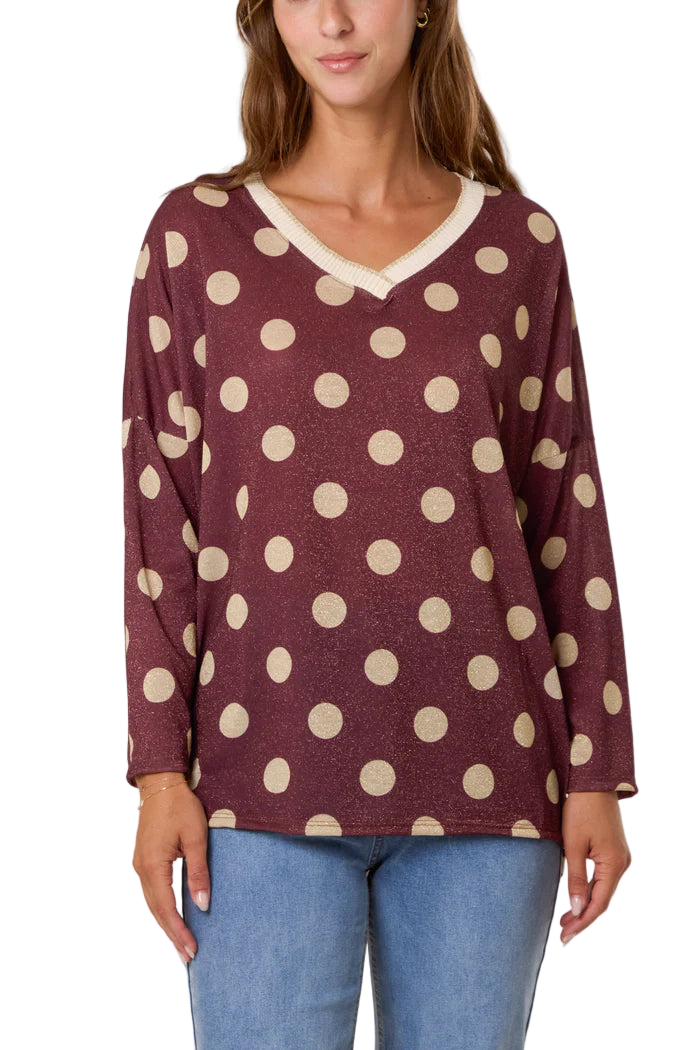 The Polka Dot Lurex Fine Knit Jumper offers a lightweight, breathable fit ideal for autumn layering. Crafted in warm seasonal colours, it features a bold, on trend polka dot design elevated by subtle metallic lurex threads that provide a delicate, fashionable sparkle. This jumper combines timeless style with contemporary flair, making it a versatile addition to an expert's wardrobe.