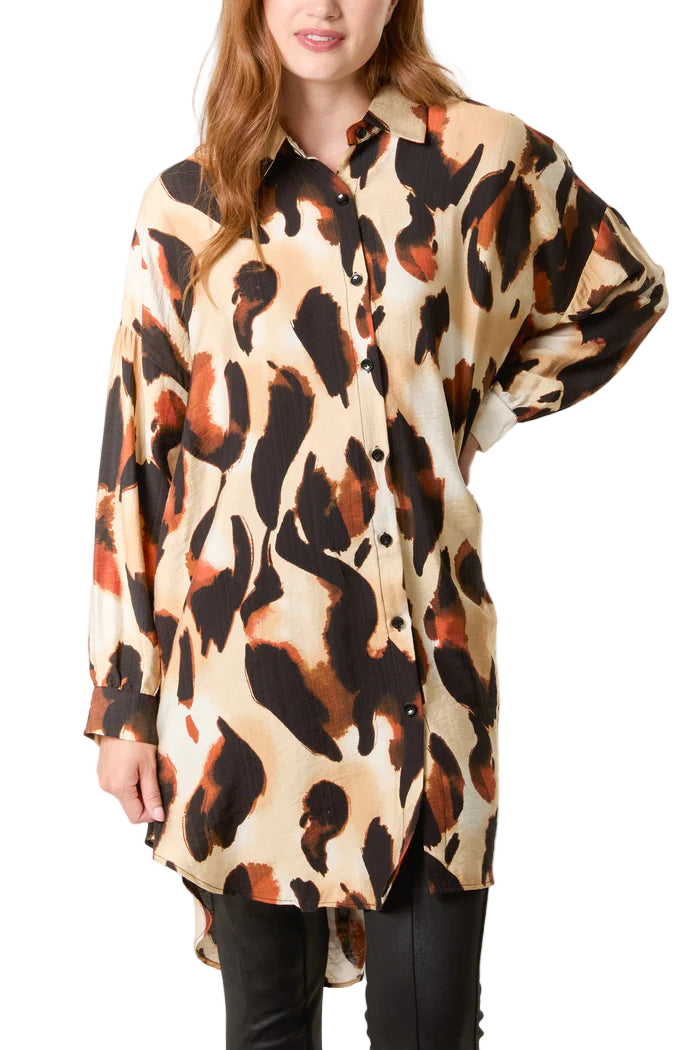 Elevate your wardrobe with this Relaxed Leopard Print Long Sleeve Shirt, expertly crafted to combine comfort with bold style. Its flowing silhouette ensures effortless movement while making a standout statement. The iconic leopard print keeps you aligned with current trends, perfect for those who appreciate luxury in everyday wear. Ideal for layering or wearing solo, this shirt brings sophistication and a touch of wild elegance to any outfit.