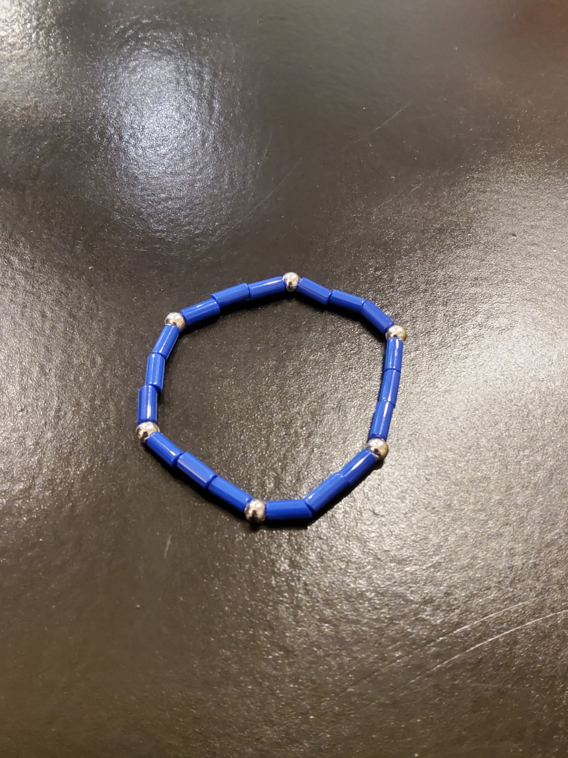 This stretchy bracelet boasts beautiful beads from Prague, making it a stunning addition to any outfit. Its royal blue colour adds a touch of elegance and its beaded design is sure to catch the eye. Elevate your style with this gorgeous accessory.