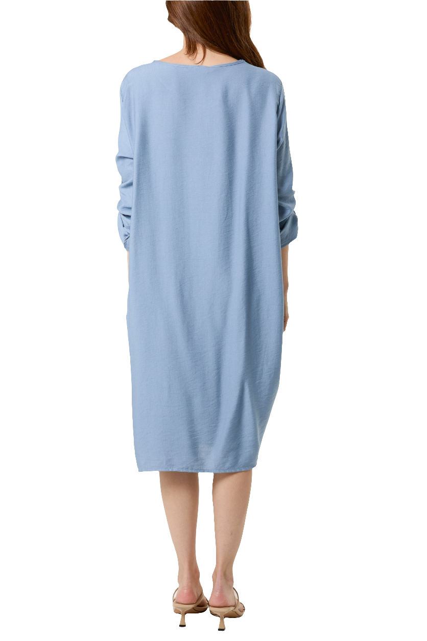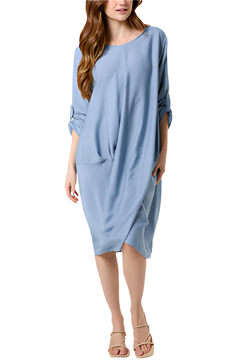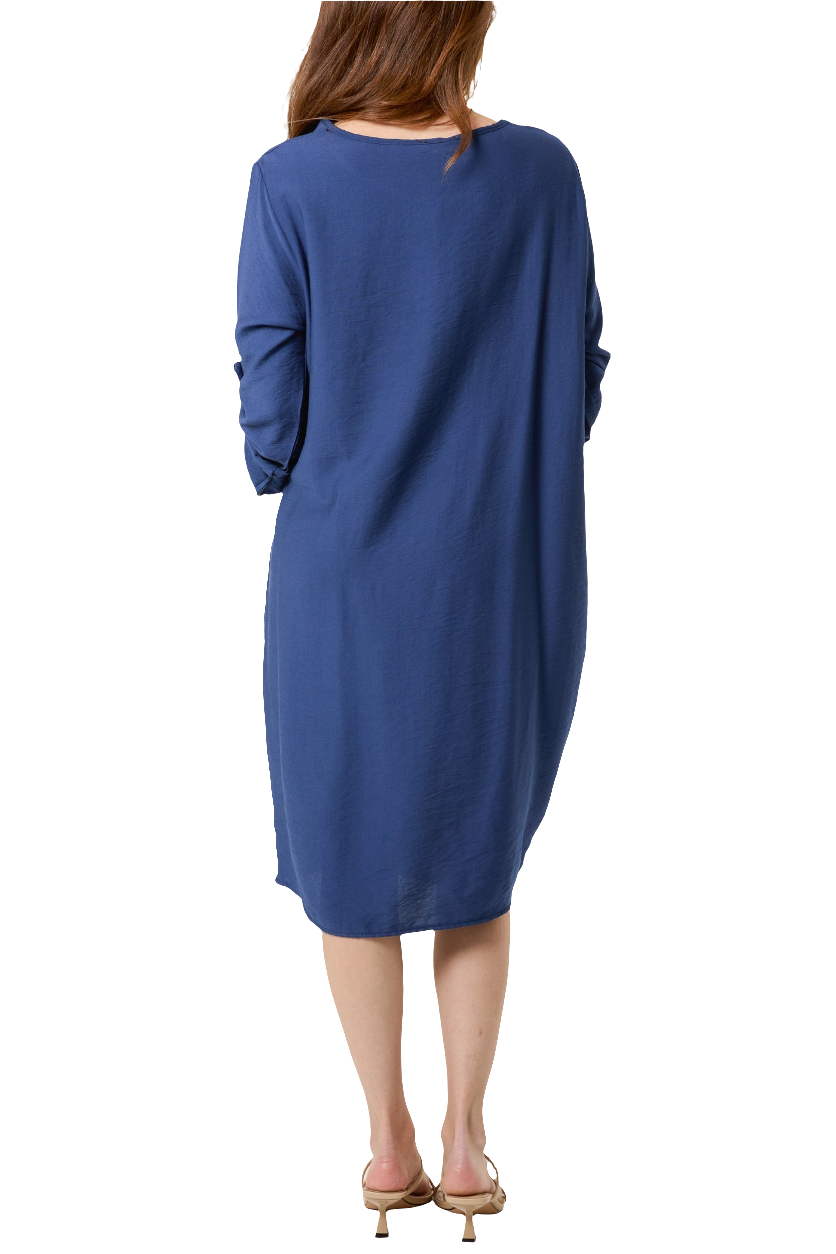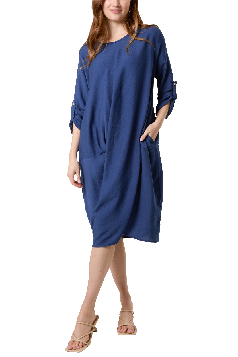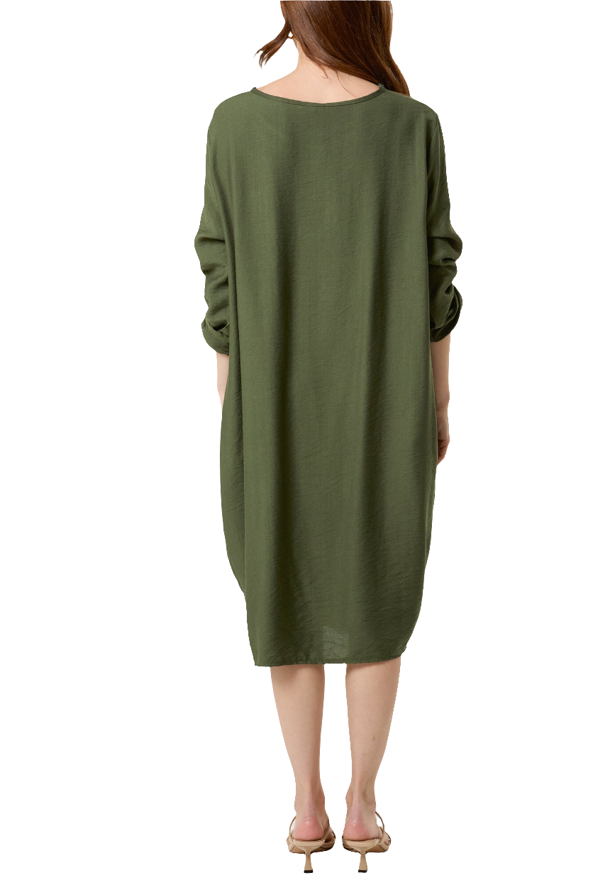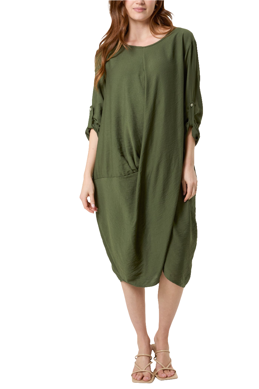 This Twisted Front Long Sleeve Dress boasts a loose fit for comfort and style. The twisted front detail enhances the figure, adding a touch of elegance to this versatile dress. Available in both navy and khaki, it's the perfect addition to any wardrobe.