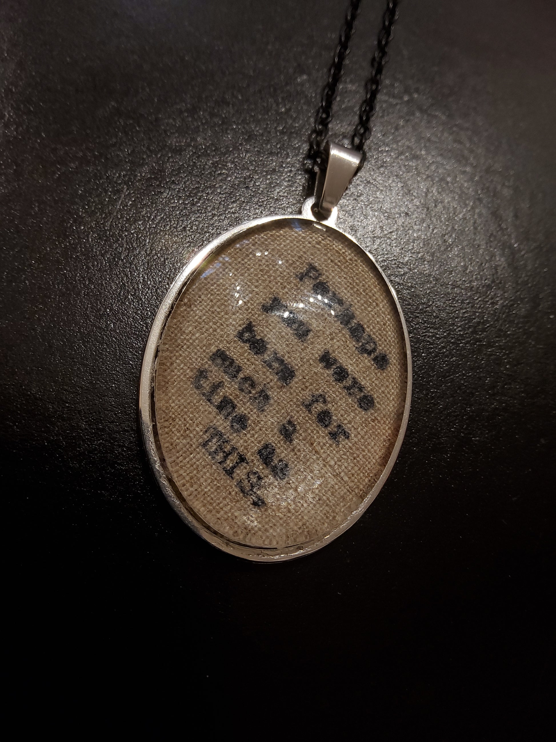 This stunning cream linen typewritten pendant is both gorgeous and unique. Made with high-quality materials, this necklace will be a timeless addition to any jewelry collection. Let the inspiring words of Esther 4:14 make a stylish statement with this elegant piece.