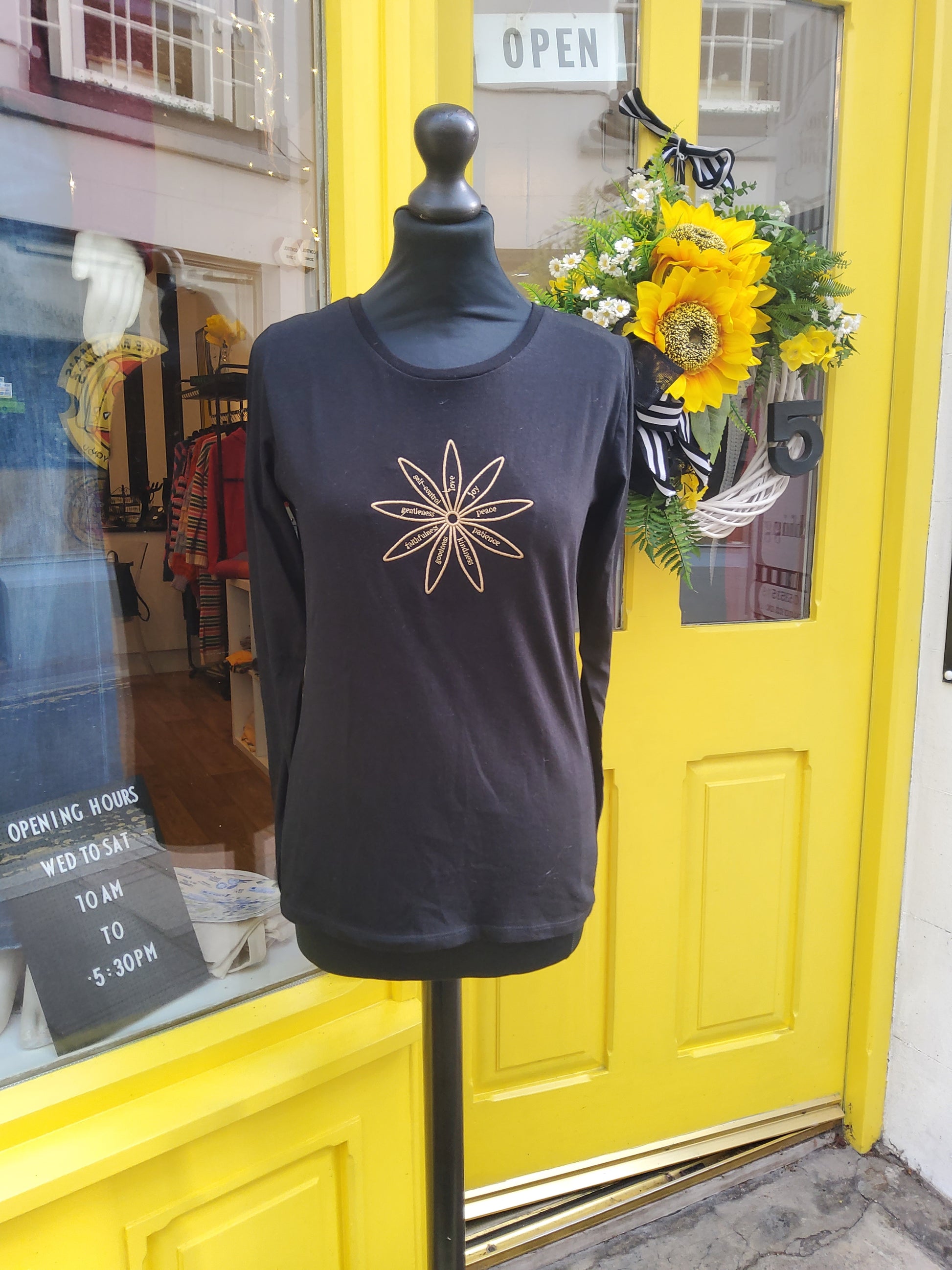 This Wearable Truth Fruits of the Spirit T-Shirt features gorgeous gold embroidery on a sleek black top, showcasing the embroidered fruits of the Spirit. Elevate your wardrobe with this tasteful and enlightening piece, adding a touch of style and spiritual inspiration to your look.