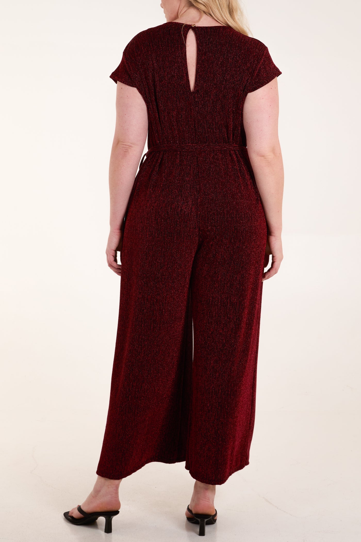 Wine Glitter V-Neck Wide Leg Jumpsuit
