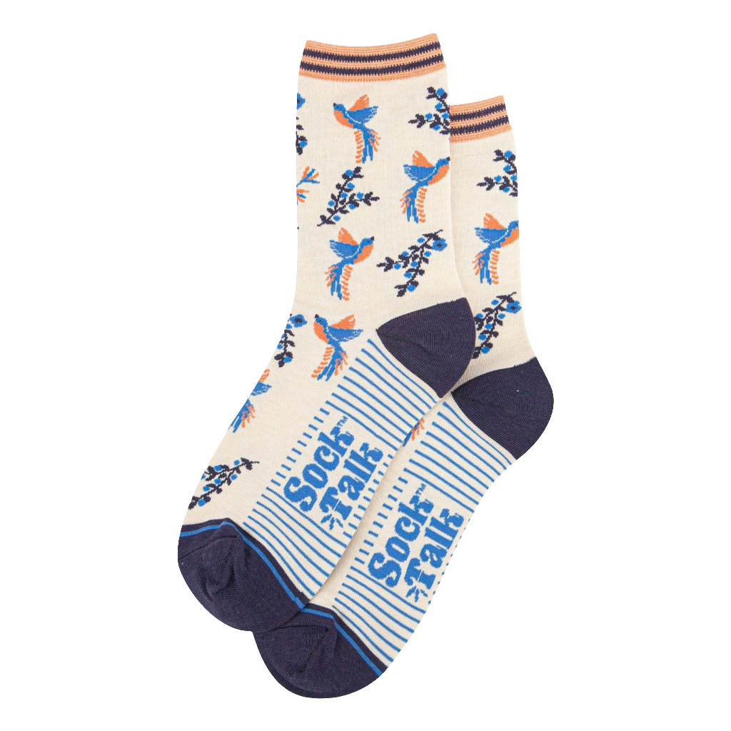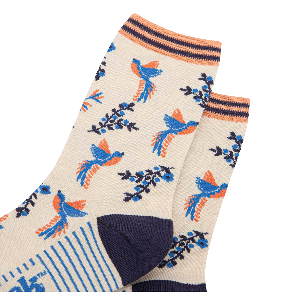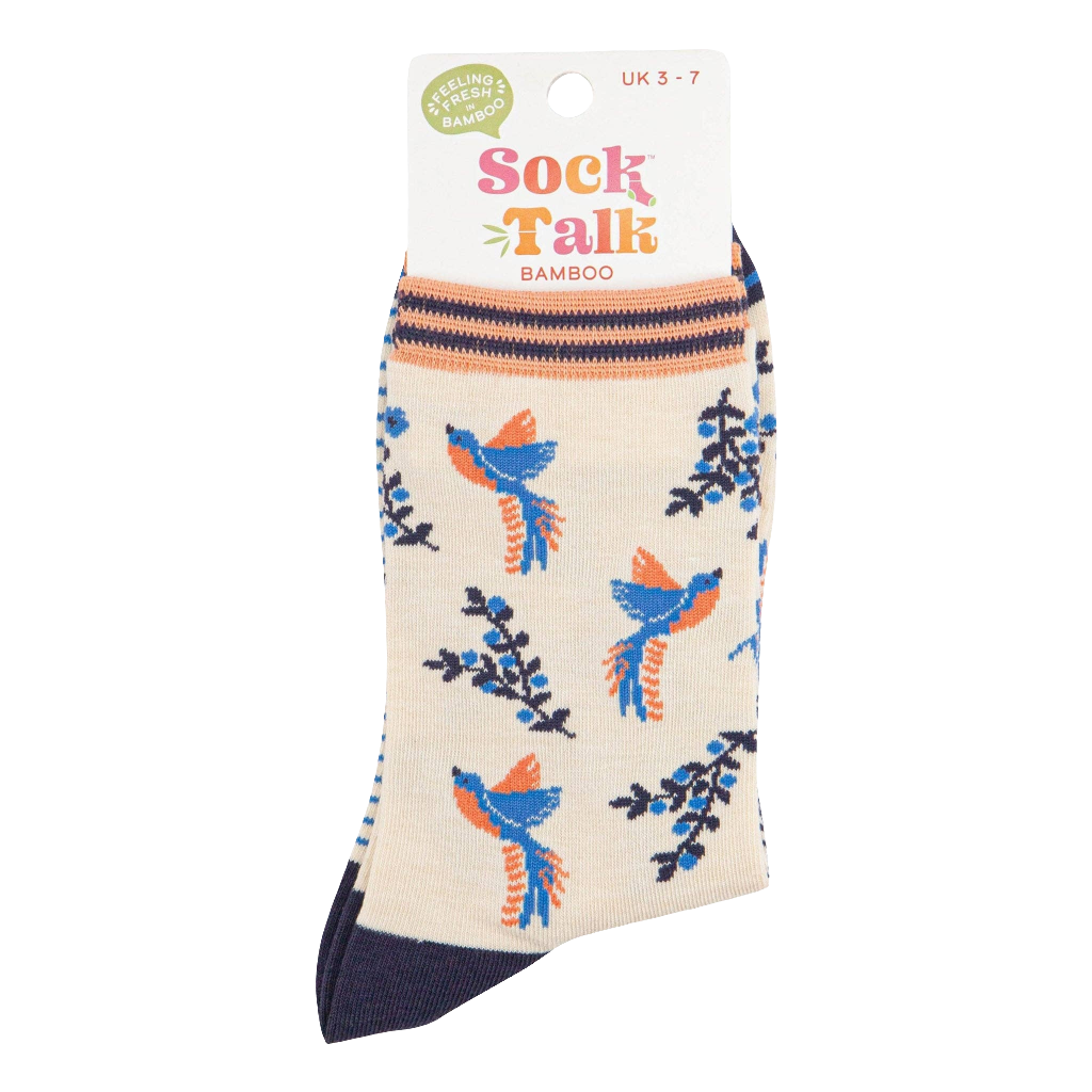Women's Bamboo Socks - Cream, Hummingbird Floral